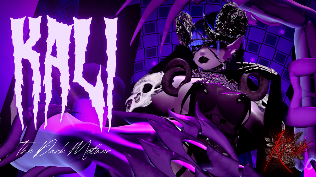 Kali the Dark Mother is an enigmatic horror of an entity who emerged from the Void, a realm between worlds, said to be the resting place of forgotten deities and untapped energies. Kali sensed humanity’s curiosity and yearning for transformation, seeing the world as a canvas to explore the delicate balance between creation and destruction. She was once a guardian of an ancient digital sanctuary, protecting realms that transcended both light and shadow. Yet, after eons of isolation, the sanctuary was shattered by a cosmic storm, scattering fragments of Kali’s power across the realms. Reborn in pieces, she now wanders these worlds, each interaction restoring fragments of her former strength. In her time, she has collected two counterparts on her journey - Shiva, The Lover; as well as Arageth, the Hound. The three of them have formed a bond unbreakable.